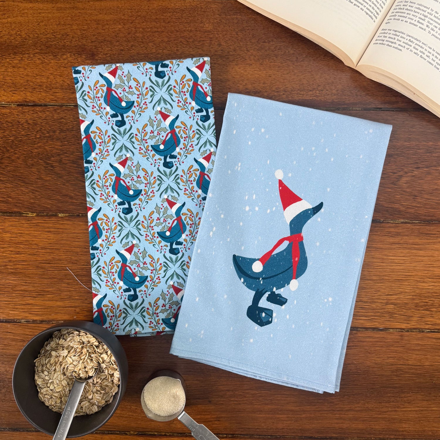 Made from 100% soft, absorbent flour sack cotton, this towel adds a playful touch to your holiday kitchen. Whether drying dishes or decorating your space, it brings festive cheer to every corner with its delightful "Duck the Halls" design.