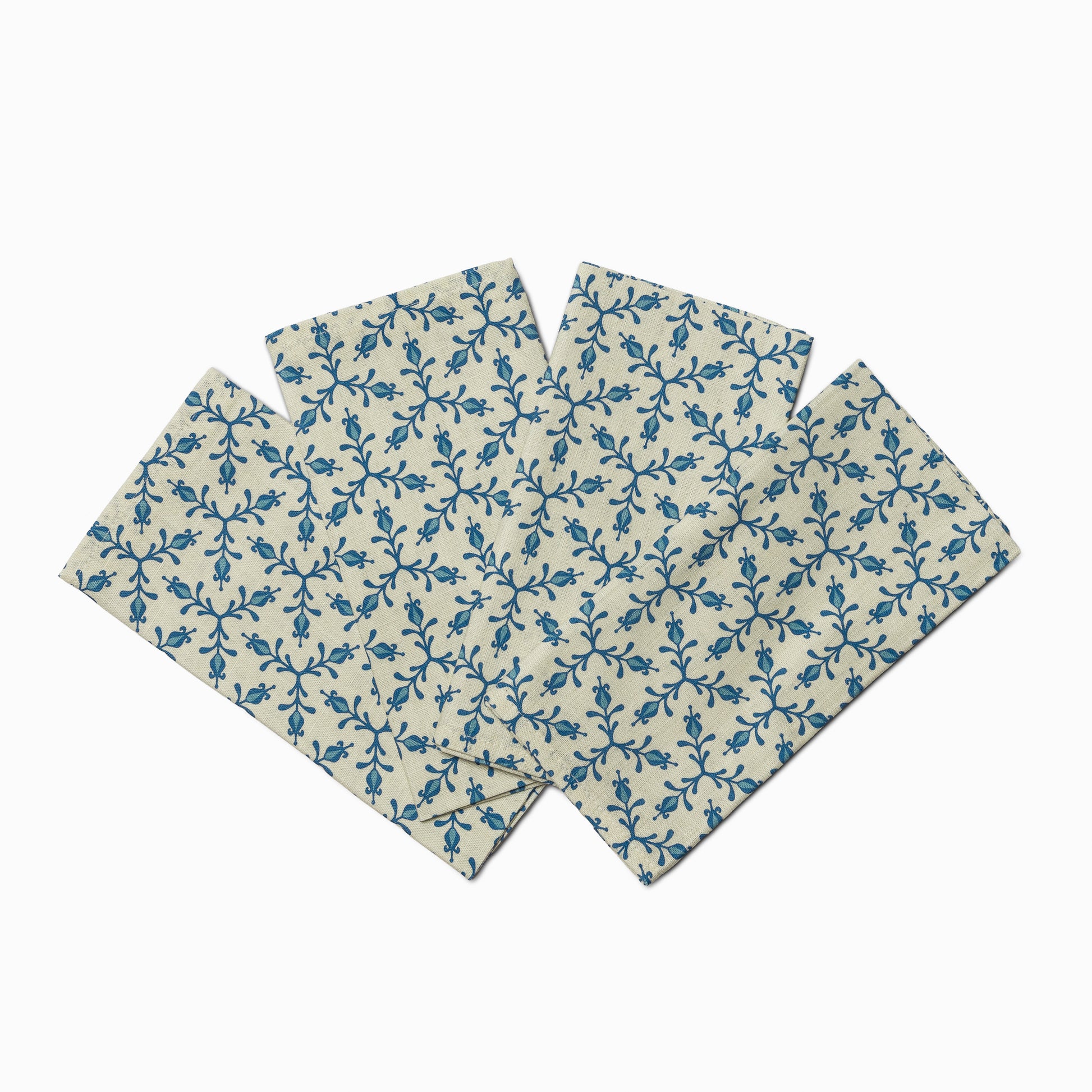 20" Square. Each napkin is hand-sewn so expect a 1-2 cm variation. Moderate shrinkage on these 100% cotton napkins is to be expected.