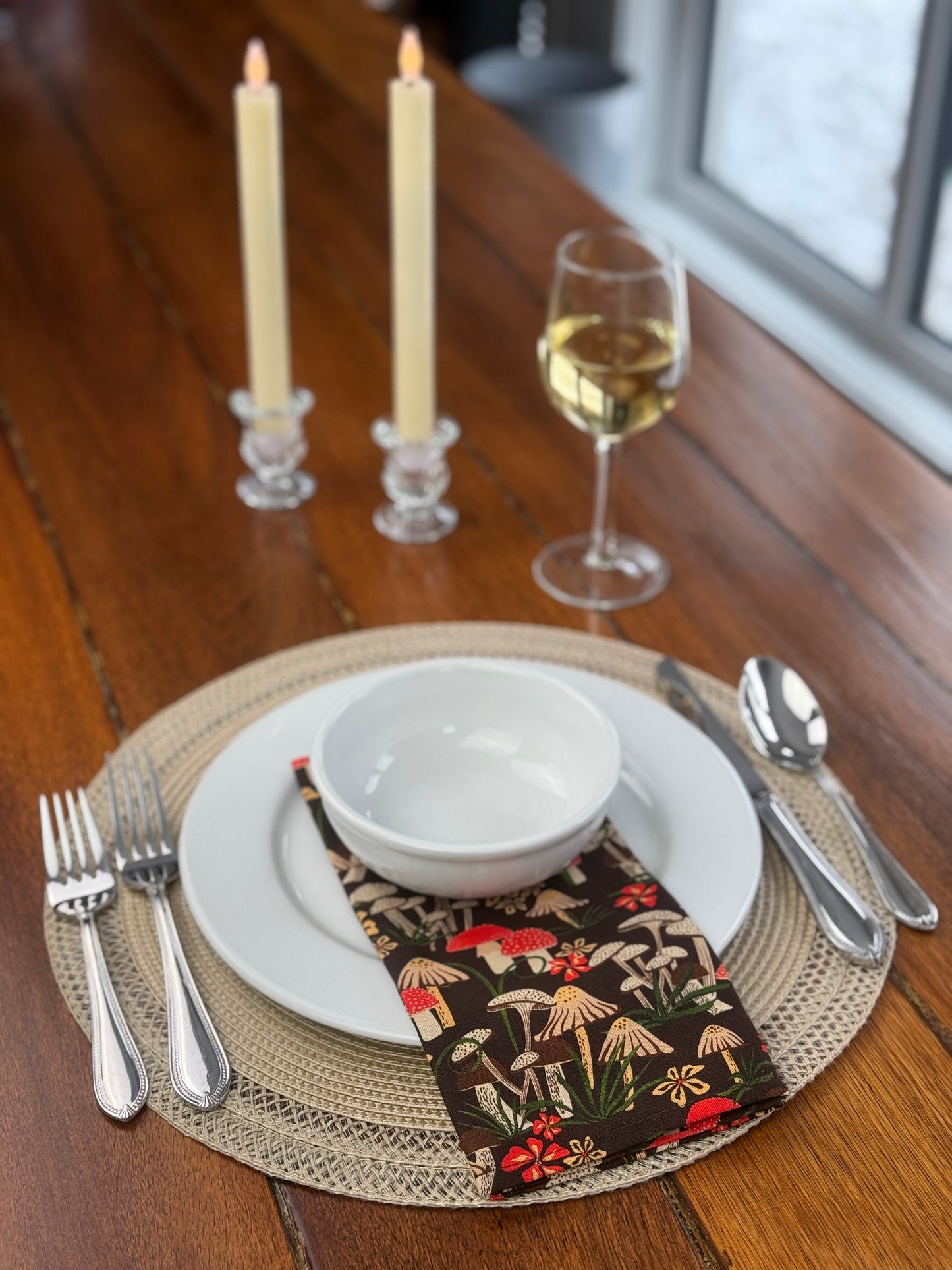 Our 20" dinner napkins are made from 100% cotton and crafted to elevate everyday meals and special occasions alike. Designed to coordinate with our hand-drawn, fun-elegant tableware, these napkins are soft, durable, and wrinkle-resistant—no ironing needed. The edges stay smooth after washing, and the patterns naturally hide stains between uses. You’re going to love the feel of this fabric—and saying goodbye to paper napkins for good.