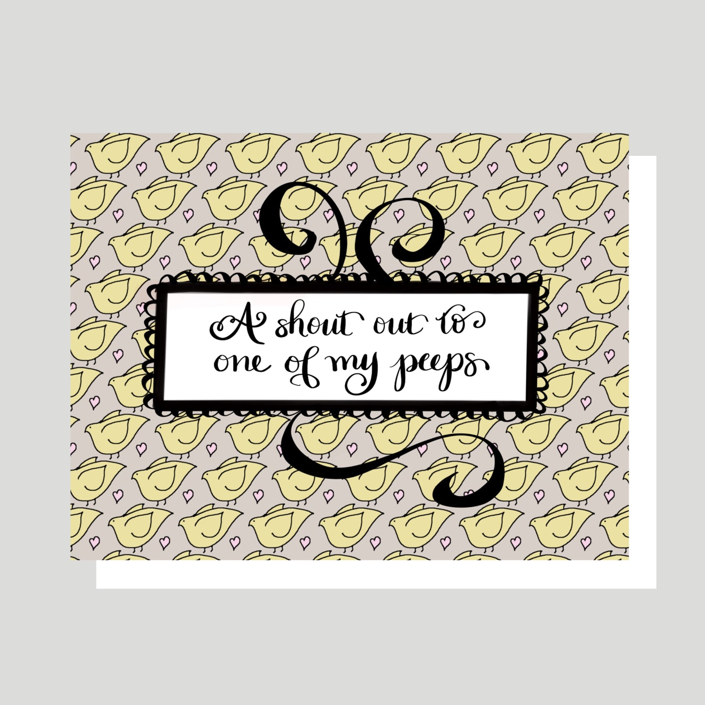 Tell them you are thinking of them with this adorable greeting card which features a pattern of chickens in on the background with cursive script on a lace banner in the middle.