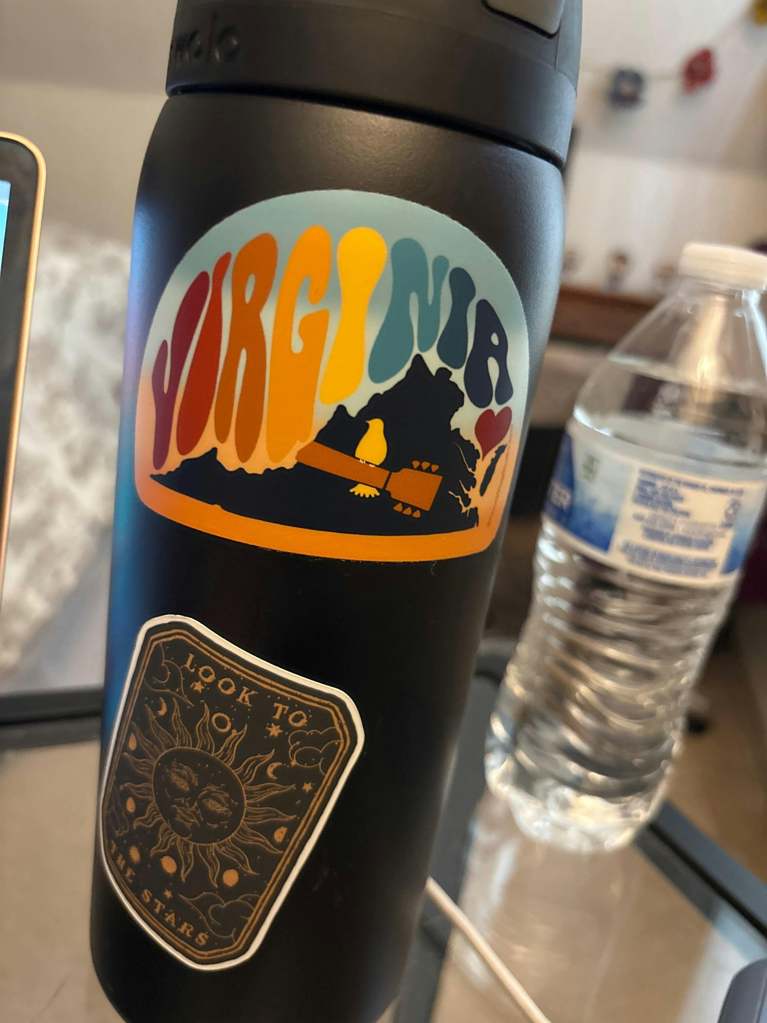 Our retro Virginia Vibe sticker is perfect for a water bottle, computer or guitar case. Made in the USA, this high quality vinyl sticker is durable, weatherproof, and dishwasher safe! Dimensions: 3.67 inches wide and 2.45 inches tall. This sticker features hand drawn art by Jennifer Knight.